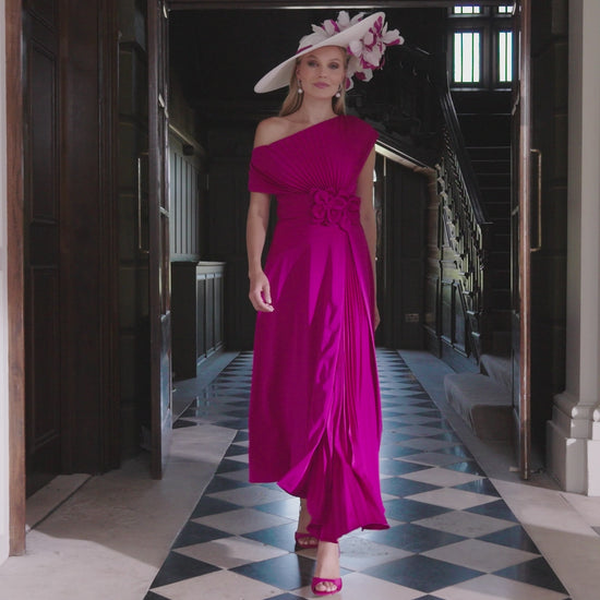 John Charles crepe & cut work asymmetrical A-line midi with pleats