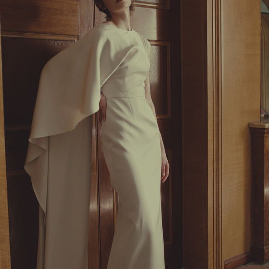 Mother of the bride/groom dress with fitted skirt and asymmetric cape