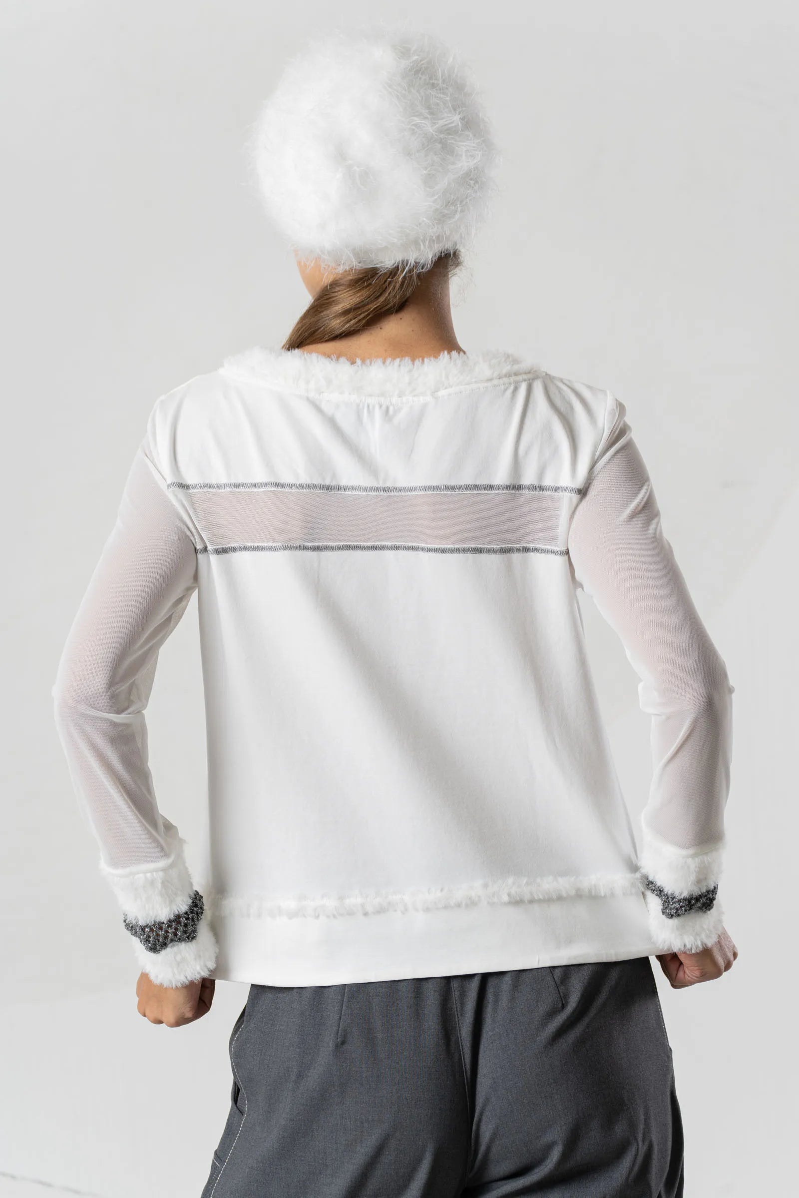 Soft white tulle T-shirt lined with cotton jersey. “Riding Freedom” flock print and spotlight applique. Soft t-shirt for glamorous day and evening looks.